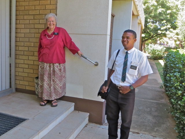 After some good natured horseplay while the rest of us looked on, elder Oldroyd carried elder Taylor down the walk.