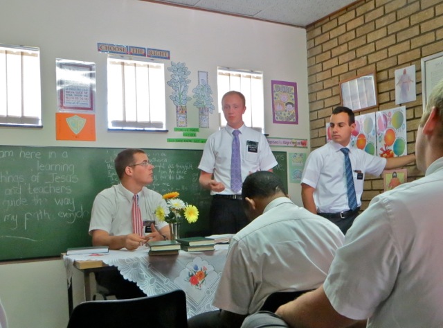 6feb15 - DM - Mary, Rami 6feb15 - DM - Elder Taylor conducting 6feb15 - DM - Taylor, McAllister, Di Ruscio 2 6feb15 - DM - Oldroyd, Rami 6feb15 - DM - Taylor, Oldroyd, Rami - 6feb15 - DM - Di Ruscio, Liera backingDistrict meeting includes each pair of elders talking about a couple of their investigators who are on date to be baptized, a couple of new promising investigators and a couple of less active members that have started coming back to church. In the last picture elders Di Ruscio and Liera are backing their cars out onto the street. Any time a mission car is backed up one of the elders is supposed to guide the driver to safely reverse. Unfortunately sometimes the backer is not paying attention and the car runs into something…but the idea is a good one.