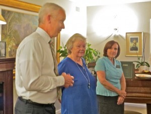 Before the meeting the elders arrive and enjoy seeing and talking to old friends and companions. Elders Smith, Dye and Bryner were happy to pose while elder Rogers explained he got a package from home.