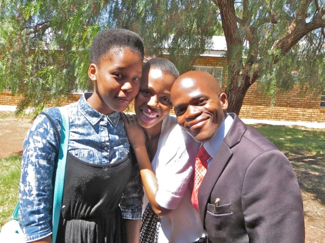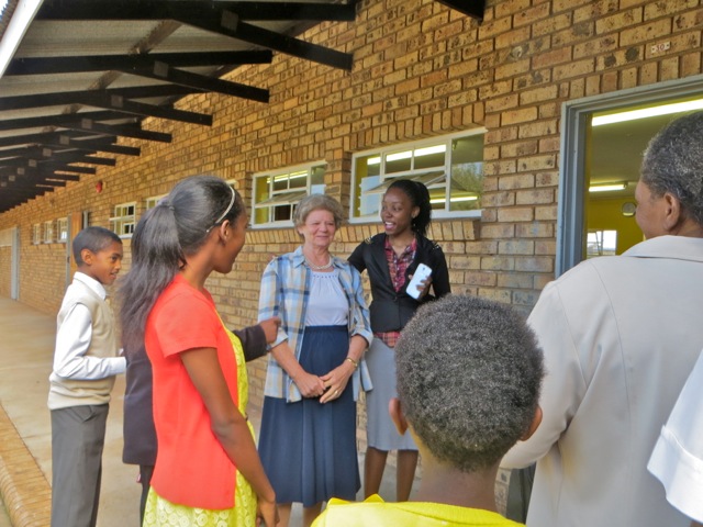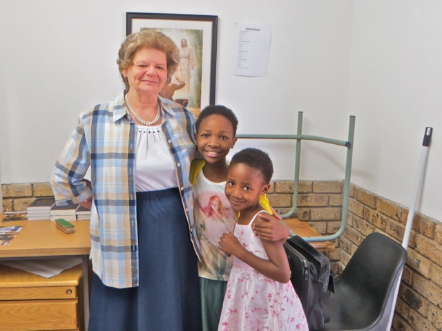 Today was sister Brummer’s birthday. She has the honor of being the oldest member of the branch except for Bill. She also does not like me to take pictures of her but today she kind of gave in. The two Kujane girls came up to her and sang happy birthday so she could not refuse a picture with them.
