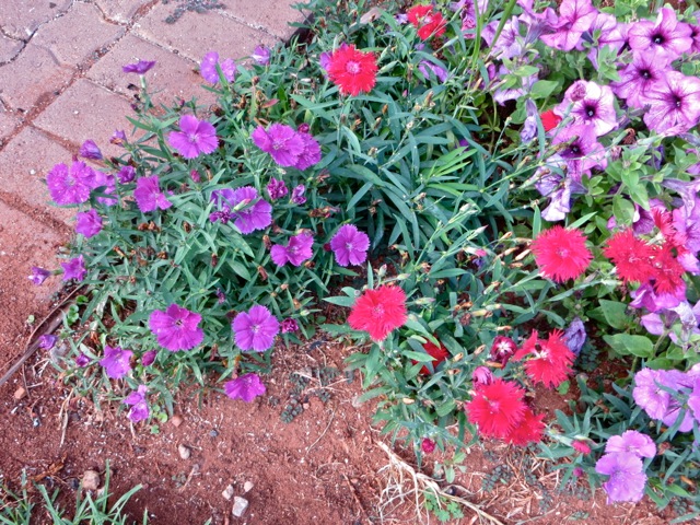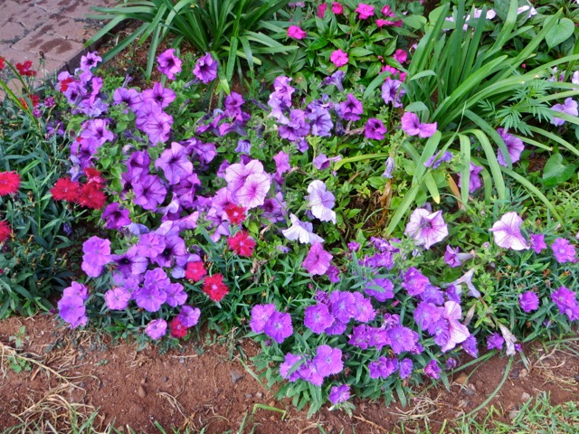 This morning I was out in the yard when I noticed this pink rose on the white rose bush and since I always have my camera handy I snapped a shot. This led to me taking a number of pictures of the yard. I thought how here in South Africa it is well into Autumn and soon many of these plants will be killed by the cold or go dormant until next spring – about the time we leave. We will arrive back home in Provo just in time for fall and so we will go through the cycle again.