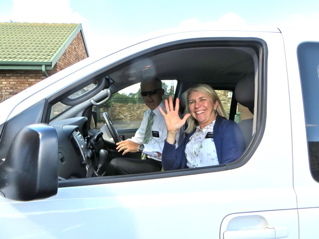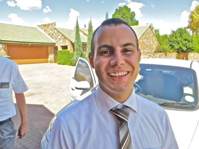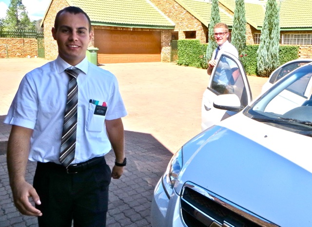 After working with the elders at the mall President and sister Dunn hurried off to their next appointment back in Joburg. Unfortunately I did not use a flash so the president is not very visible. Elder DiRuscio and elder Todd – both smiling.