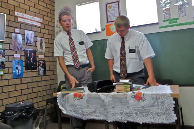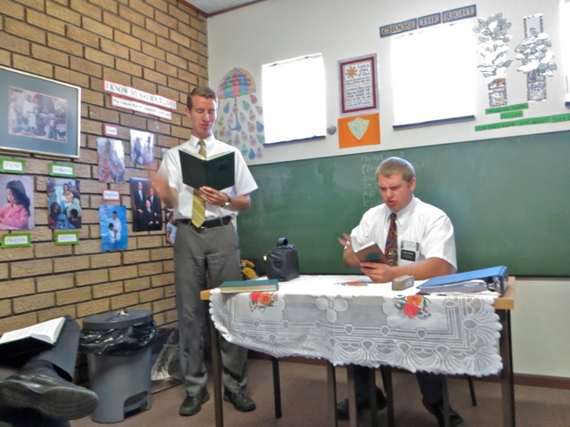 Elders Peterson and Di Ruscio reports on the Klerksdorp area. Elder Todd and Oldroyd on the Jouberton are. Elder todd and Oldroyd had a bike stolen – they did not lock it to something solid – and so they are doing a lot of walking. This has turned out to be a blessing as they have made a number of contacts that they might have missed if they had been riding their bikes. Making lemonade out of lemons…