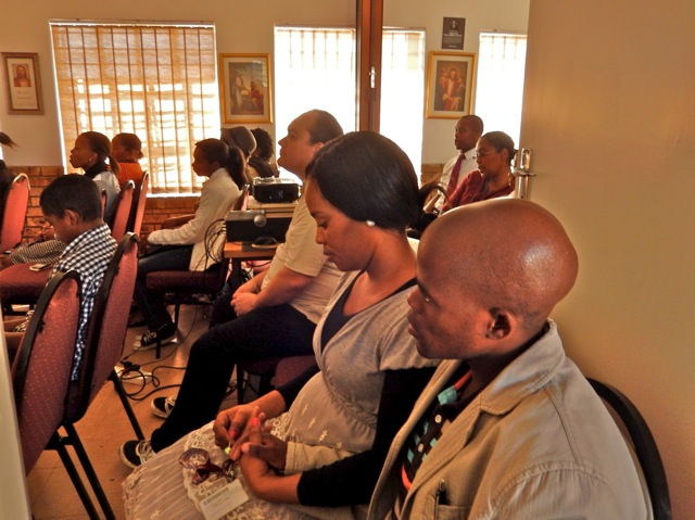 Sister Nasi Williams filled two pages with notes from the Saturday conference sessions – she wore her pencil down to a stub. Mary’s two piano students – sister Lebo and brother Kruger just happen to be together when I took this picture.