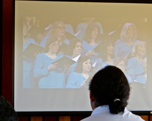 The Sunday sessions were shown in the main room so that more members could be seated comfortably. There were about 40 for the first session and 30 stayed for the second. 10 of those attending were Primary aged children.