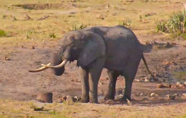 This morning I clicked on the Tembe Elephant Park webcam in time to get this great shot of a very old – just look at those tusks – and large elephant. The park advertises that they have some of the larges elephants in Africa and looking at this guy I believe it. Unfortunately the waterhole is getting smaller and smaller each day and if it continues it is likely to dry up. If that happens than the animals will have to find someplace else to get their water.