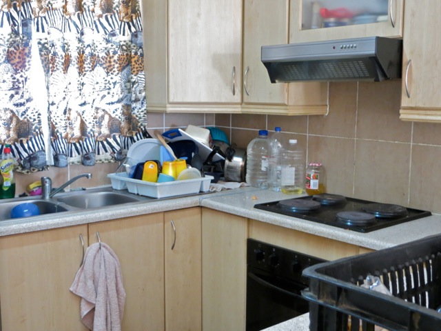 Our final inspection in the complex – there are four sets of elders there – was Sebokeng 1 with elders Carter and Mwale. Their flat was lived in but you can see that all of their dishes were washed and not piled up in the sink like some of the other flats we inspect. They did have one major problem and that was that their bathroom ceiling was almost black with mold and that is very dangerous. We gave them instructions on how to clean it and hopefully they will.