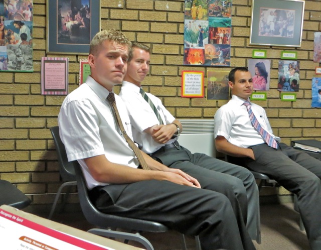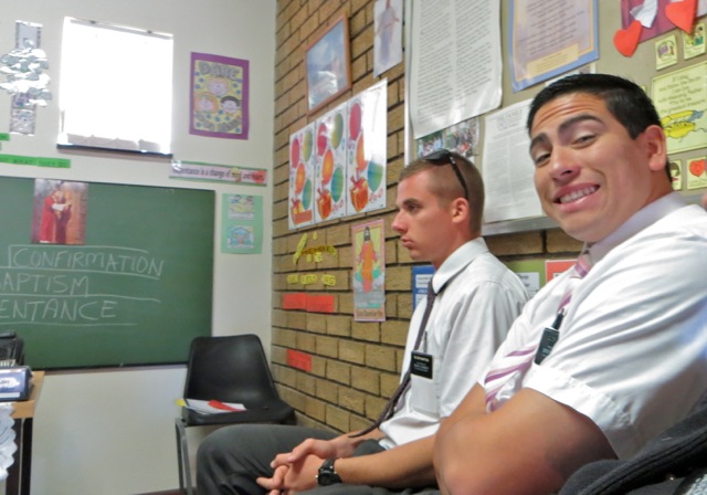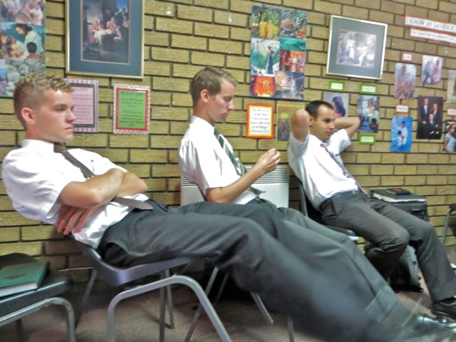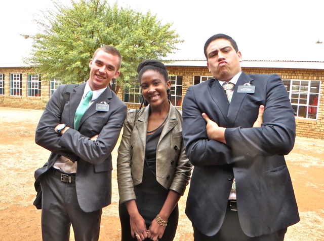 Elders Barton and Alvial flank the future Elder Gerber. Kenny again with sister Lebo and a friend she brought to church stand next to Kea and Omphile – the future Mokate family perhaps?Â
