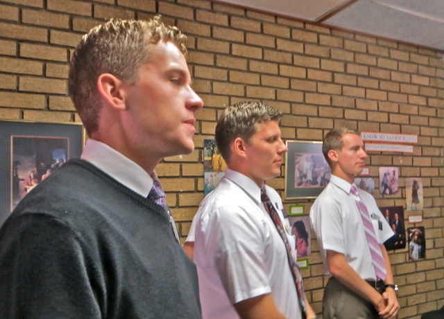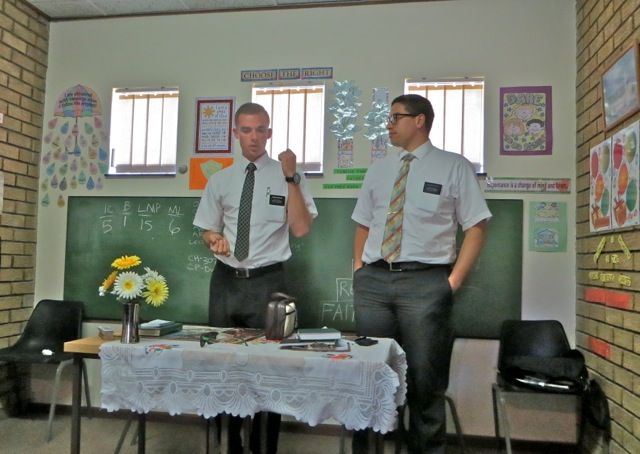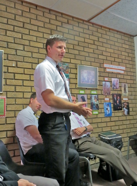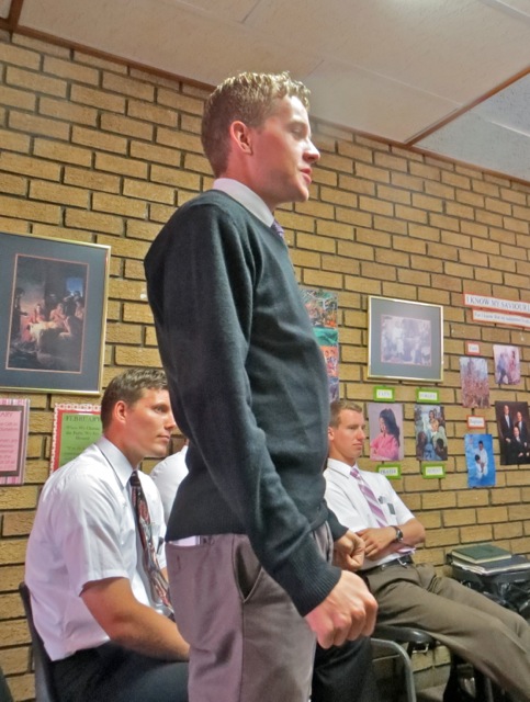 This was the first district meeting of this transfer and the first for elder Barton as district leader. We welcomed two new missionaries – well new to the district – elders Dye and Turauskis. We knew elder Turauskis because  he was already serving in the Vaal zone  so we had met him at zone meetings.