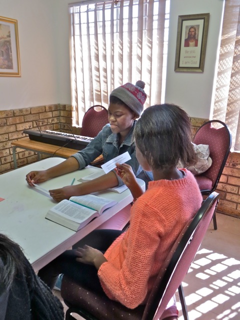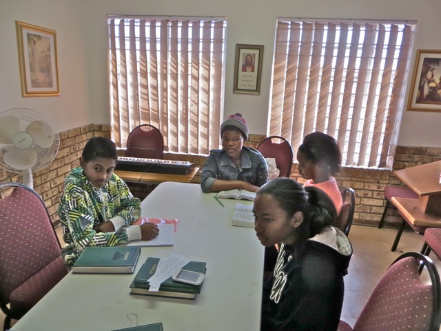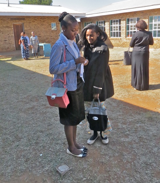 Sisters Georgina and Merriam are probably discussing  Primary. While sisters Thato and Shavonne are checking out some pictures.