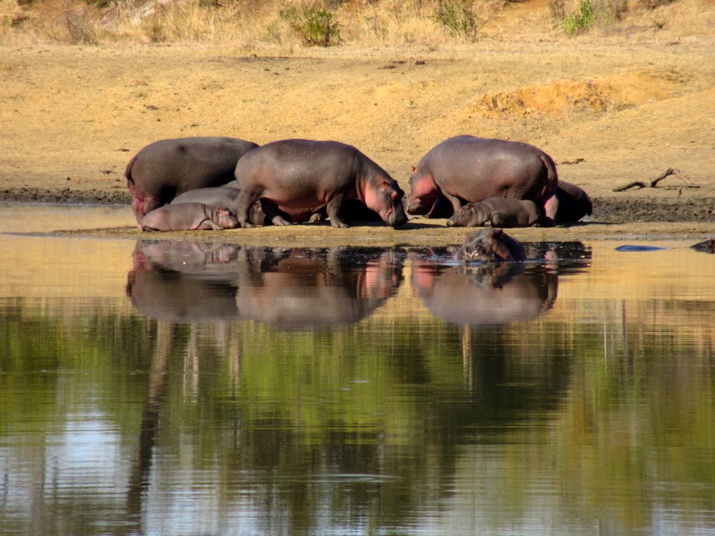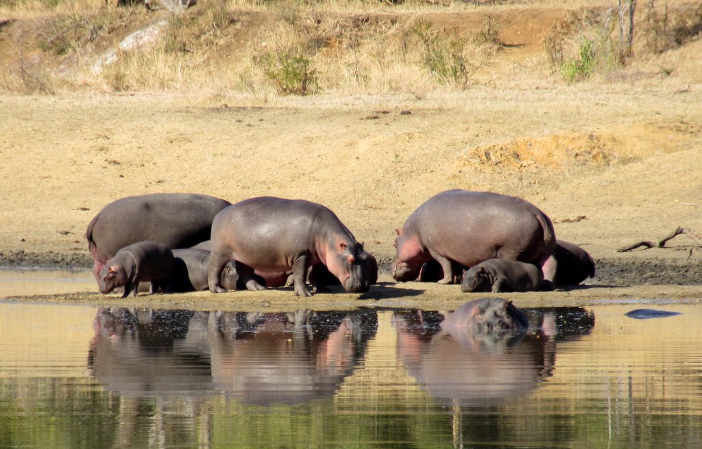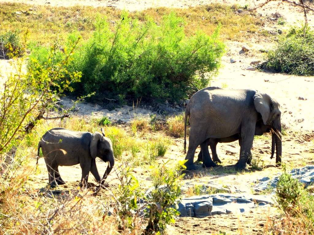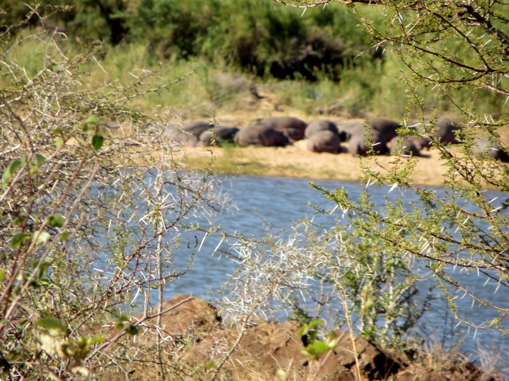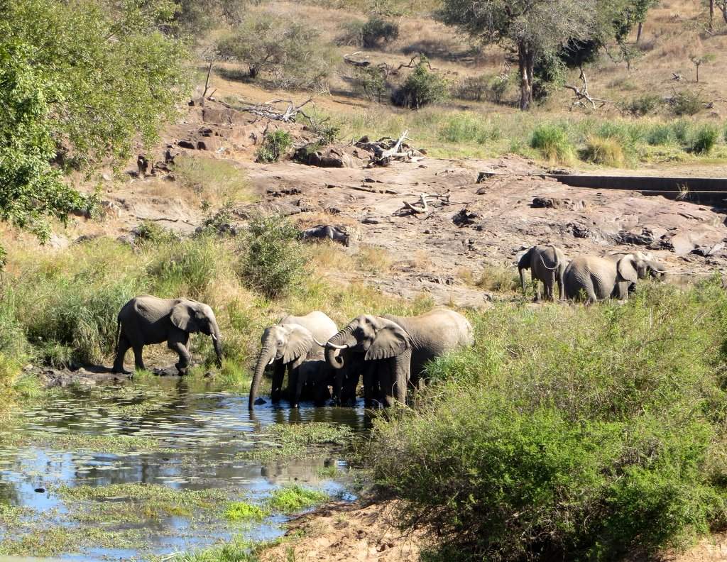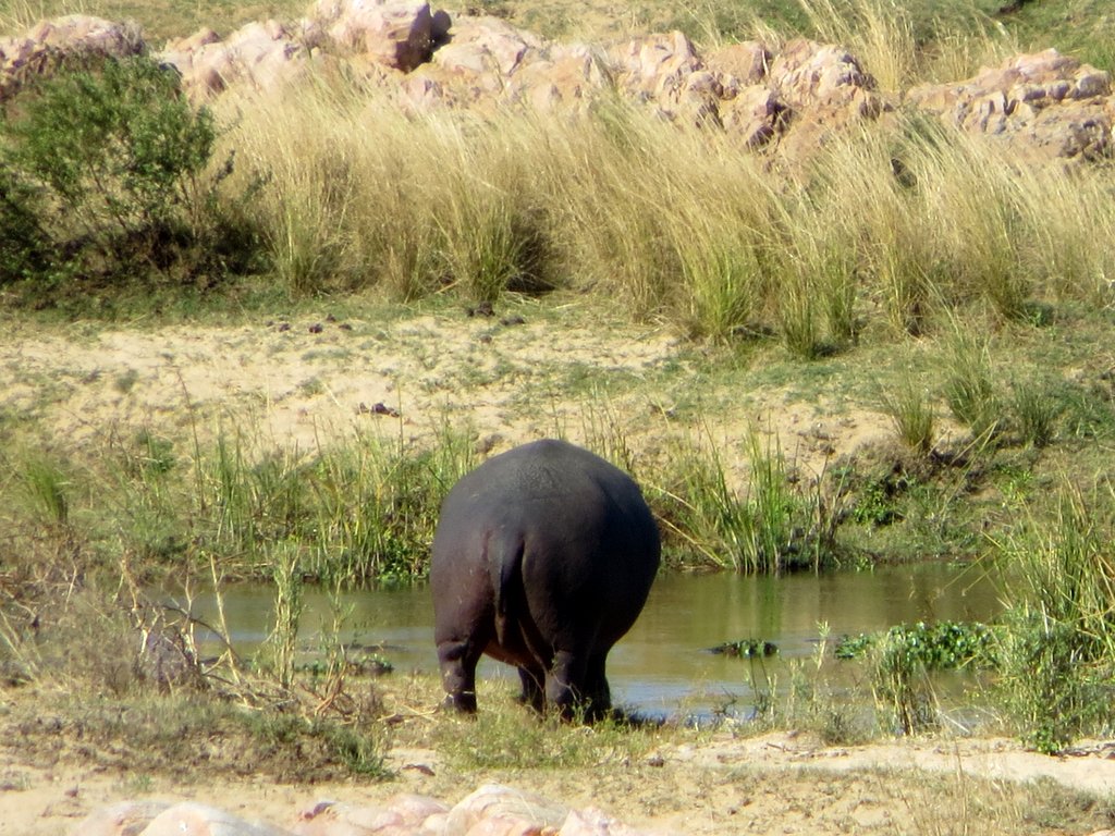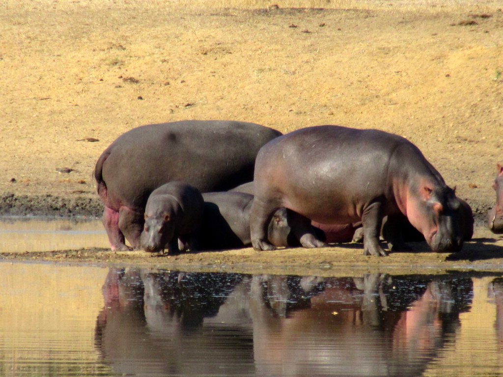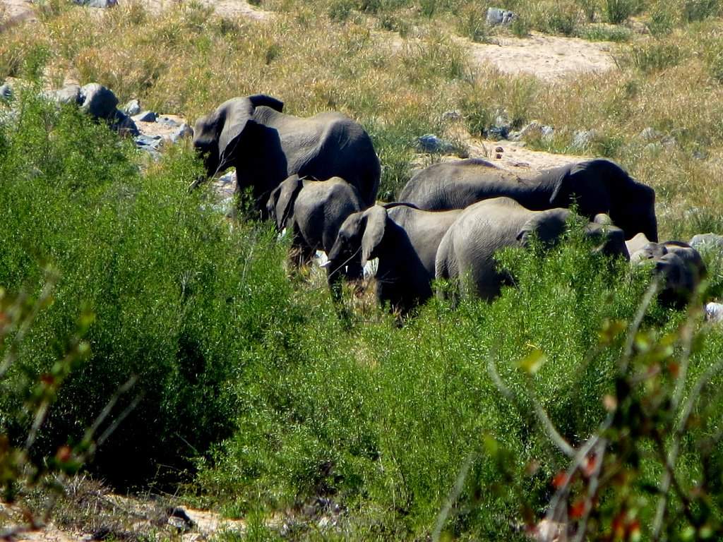 We saw tons – no pun intended – of white rhinos but of course no black rhinos…people claim to have seen them but no one has a photo that they took – “it was too far away” – it went into the bush before I could get a shot” etc. I think black rhino sightings are a myth. On a game drive during our first mission to South Africa one of the guides pointed out across the plains to a disappearing dot and said “There goes a black rhino” – right!