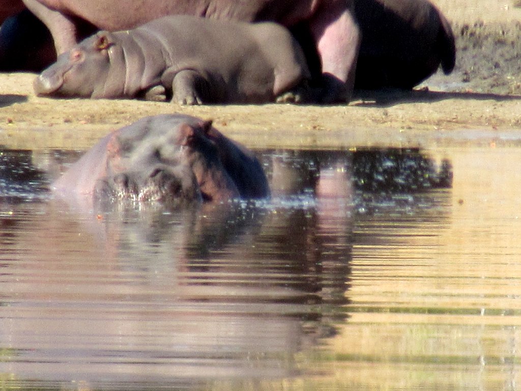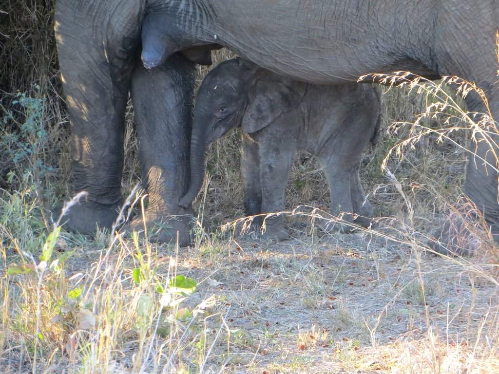 We have some great shots of elephants with the best being a series showing a week old calf with its mother and one where an elephant is drinking from a cistern that is about 6 feet tall. We saw lions everyday but only got one really good photo opportunity because most of the sightings were at night…but we did finally see a leopard and got one photo! We also saw three cheetahs but once again it happened so fast and at dusk that we have no photos. Is a hyena considered a canine? We did get to see a couple and got one photo of this very shy animal.