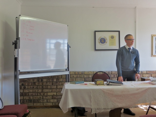 Friday means that it District Development Meeting. This week was a little different because we held it at the Ikageng office instead of in Klerksdorp. This was due to sister Dunn asking us to take one of the elders to the doctor to have his blood tested. It seems he has not been well for a month or so and doctor Barton wants to make sure it is nothing serious.