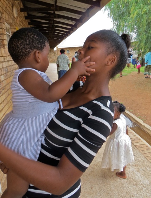 After the he baptism sister Mpho has a great wet smile. I had to take this picture of sister Mpho’s daughter as she tries to reclaim her blinky from her cousin. She is probably the most held baby in the city as it seems all of her aunts, cousins and others just like to hold her. She is truly loved.